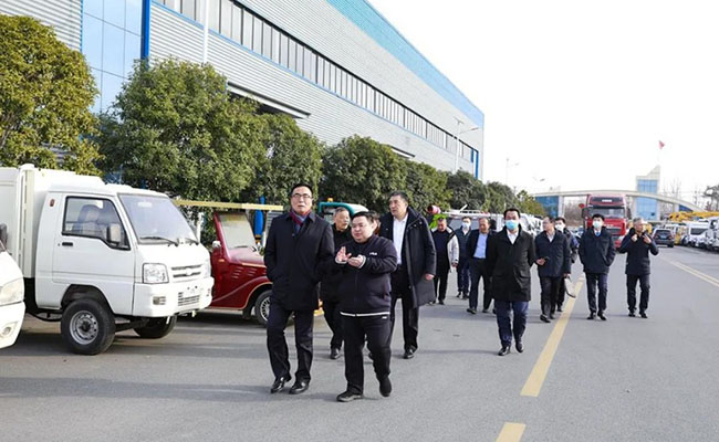 王志才總經(jīng)理一行領導及負責人,不畏凜冬寒冷,先后步行參觀程力(曾都)汽車工業(yè)園、程力南郊汽車裝備制造工業(yè)園兩大基地。來賓們看產(chǎn)品、下車間、問工藝,無一不細致入微,調研考察工作扎實認真高效。