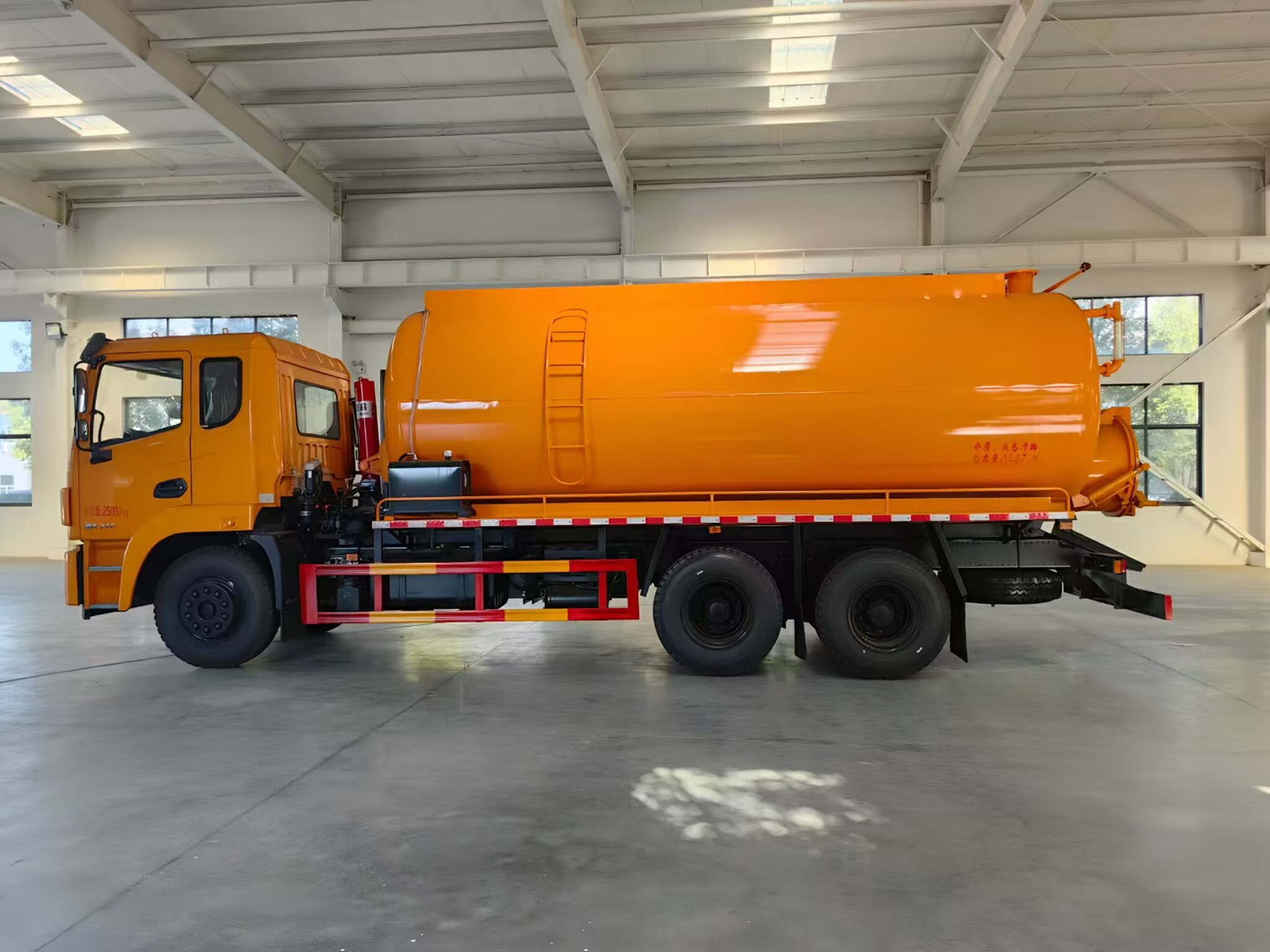 | 上裝配置 | 罐體容積約20方,8m碳鋼板材,選裝安裝山東204水環(huán)泵配,后封頭液壓打開(kāi)。后封頭上一個(gè)800水泥蓋放污,可液壓開(kāi)啟,后封頭一個(gè)6寸出口,一個(gè)100寸進(jìn)口直通罐頂,加強(qiáng)型車架,自卸車設(shè)計(jì),罐體帶舉升功能(前頂自卸),罐體尾部箭頭燈,帶一個(gè)視污窗口。帶8米吸污管。其余廠內(nèi)標(biāo)配! | ||